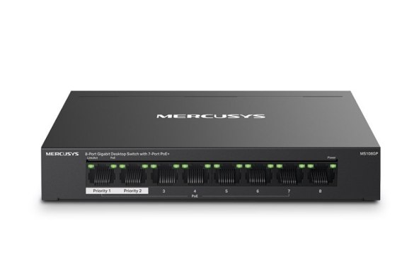 TP-LINK Przełącznik Mercusys 8-Port Gigabit Desktop Switch with 7× Gigabit PoE+ Ports, 1× Gigabit Non-PoE Ports MS108GP